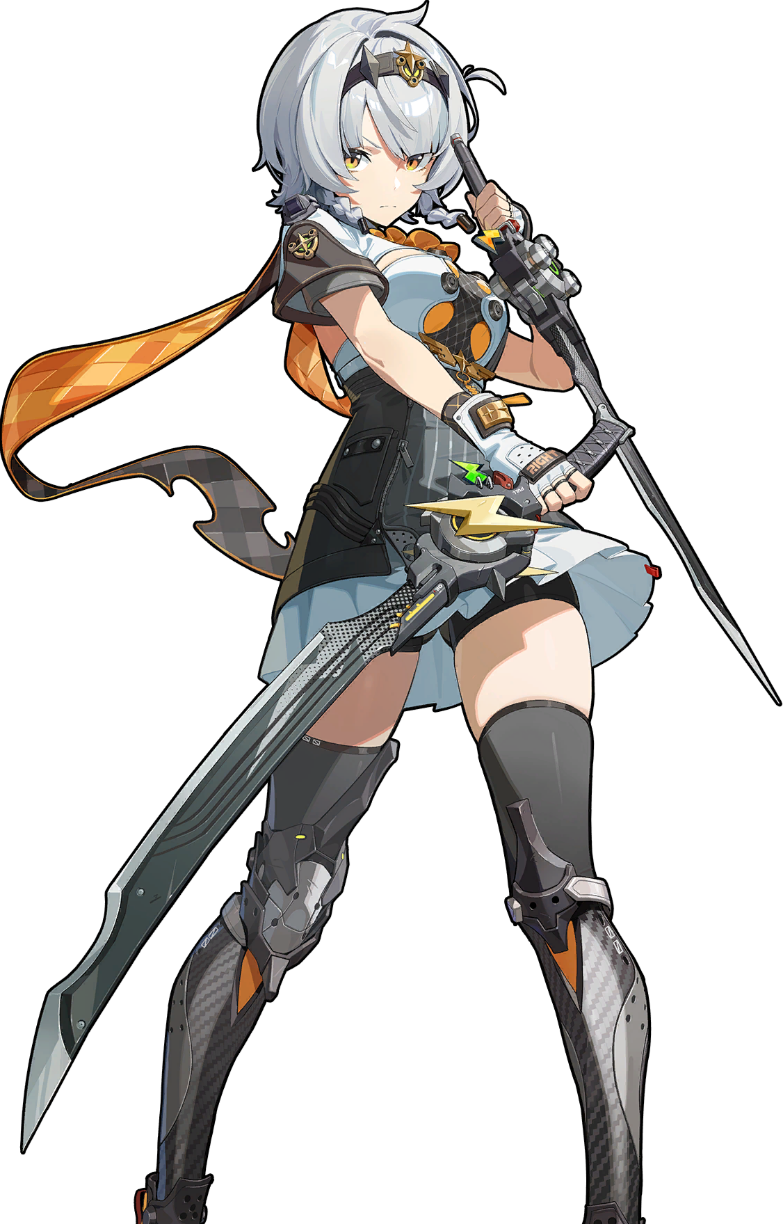 Dyna was awakened by the ‘Primary Support Service’ (PSS) in the year 2051. Upon awakening she was face to face with what appeared to be the surviving 15 members of humanity. Her vessel was lacking memories due to amnesia however the PSS were quickly able to bring her up to speed, informing Dyna that an alien race known as The Apostles had launched an invasion on the Earth, decimating and dwindling down their numbers to just 15. Despite her lacking her memories, Dyna could feel her vessel’s natural instinct to fight and urge to protect those who remained.Working under the PSS, Dyna pushed back against The Apostle Invasion, using only her vessel’s natural abilities and growing closer to the PSS as she did - becoming especially close to one of the members called Rothcall. Dyna continued to disregard her Absolute Affinity in order to maintain Chrona’s ‘Non-interference policy’. In the process she learnt that her vessel was BRS2035 and that her name was ‘Stella’ as she gradually regained her memories.She learnt that she was a genetically modified clone born in 2035 - known as a ‘Gray’ - of an Earth singer named ‘Sing Love’, bred for combat and war by her father Weiler Gibson after The Apostles had invaded. By 2040 she learnt that Gibson had finalised his plans to turn Stella into a living weapon to fight back against the Apostle Army. Stella was placed inside of a stasis capsule at six years of age in the city of San Francisco, intending to be awoken upon reaching physical maturity, however the PSS had awoken her 3 years earlier at the age of 16 due to the dire situation of Earth.While in search for the last remaining human woman in Moscow, the PSS were all slaughtered by a member of the Apostle Army known as Nafe. Distraught that she was unable to protect those she’d grown close to, Dyna attacked Nafe but was quickly dispatched by her after watching Rothcall die in front of her eyes. Despite her defeat she was still alive and pushed onwards and ended up being rescued by the woman she was looking for - Nana Gray - a fellow Gray likewise created by Gibson.Dyna and Nana ventured together to one of Gibson’s laboratories for something that could help them where they uncovered a project Gibson had been working on before his death that he called ‘The Arc’, a computer containing genetic samples to restore countless earth species that were thought to have gone extinct within the Alien Invasion with the intent to clone them. They also learnt that ‘Sing Love’ - their mother - was the leader of The Apostle army and an alien herself and that her real name was WRS (White★Rock Shooter). They learnt that the true reason for their creation was so that ‘Sing Love’ would be able to fight them, kill them and absorb them to make herself stronger through a process called neblading. Gibson opposed this and instead wished to save them and keep them safe, regretting his choice to turn them into weapons. However during this investigation the two were apprehended by Lilio - another member of the Apostle Army.Despite Dyna’s victory, Nana used this as an opportunity to overpower Dyna and leave her in the lab, intending to defeat Sing Love on her own. Dyna was eventually able to catch up, fighting her way through the Apostle base and making her way up to the Moon - defeating the remaining Apostles on the way. Dyna confronted WRS and after a battle to the death ended her life, putting an end to her invasion and fulfilling her desire to fight a perfect clone of herself. Before she died, WRS dubbed Dyna as a ‘White’, signifying her as a perfect clone. Dyna protested this however, revealing her identity to WRS to bluntly communicate to her that her victory was never even on the cards to begin with.After WRS’ defeat Dyna and Nana continued to operate out of The Apostle’s moonbase to watch over Earth. They activated Gibson’s arc to gradually lead to the restoration of Earth’s animal population in hope to restore the climate. They also discovered that despite what they fought there were still countless human settlements around the Earth that were hidden underground, which could lead to the slow restoration of humanity itself. With this revolution Dyna went onto take up the title of ‘Guardian of Humanity’, where she discarded both the name’s Dyna and Stella for the time being and instead taking up the mantle of ‘Black★Rock Shooter’ to honour Gibson and further deplore WRS, wishing for the name to inspire and bring hope to all that hear her name.